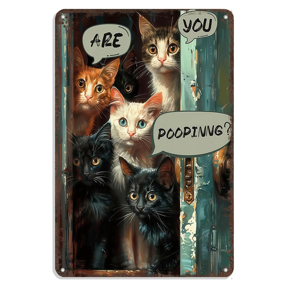 Vintage Cat Metal Sign – Funny "Are You Pooping?" Wall Decor - BW036