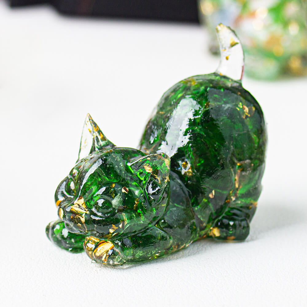 Green Glass - Handmade Natural Crystal Gemstone Cat with Raised Tail