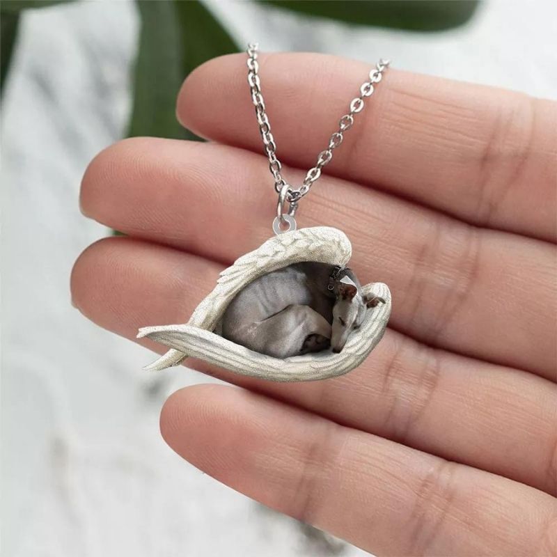 Greyhound Sleeping Angel Stainless Steel Necklace SN083