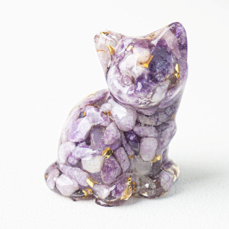 Amethyst - Handmade Natural Crystal Gemstone Sitting Cat