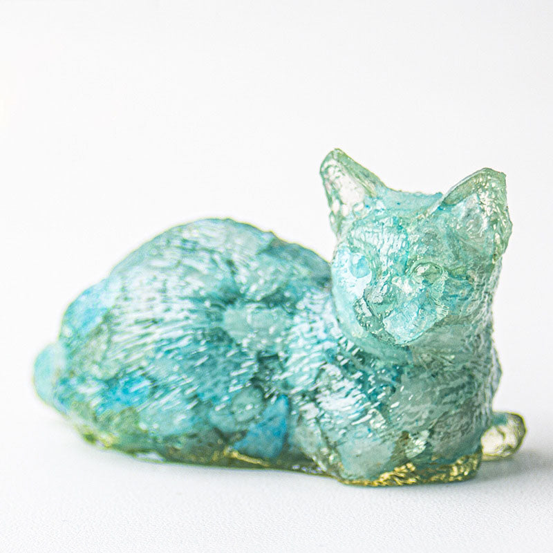 - 1 x Handmade Natural Crystal Gemstone Lying Cat - Aquamarine