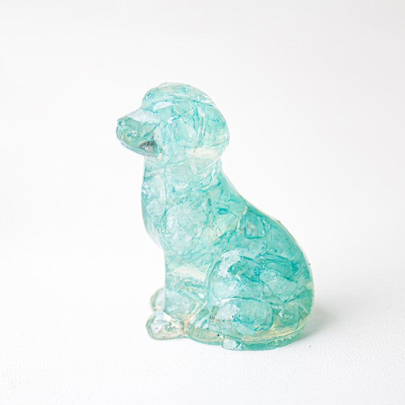 - 1 x Handmade Natural Crystal Gemstone Sitting Dog - Aquamarine