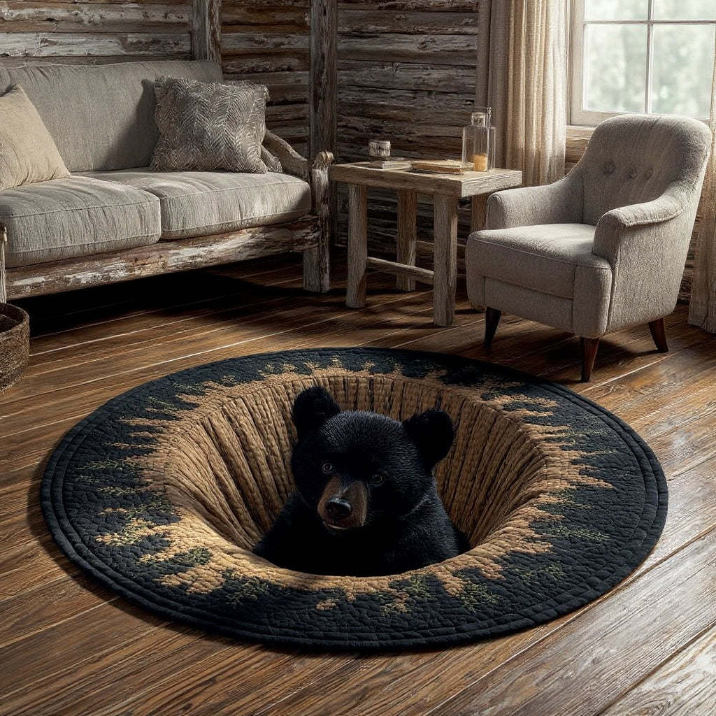 Bear Burrow - 3D Illusion Bear Round Rug - Den Cub