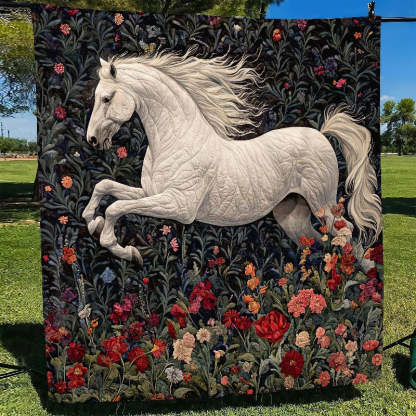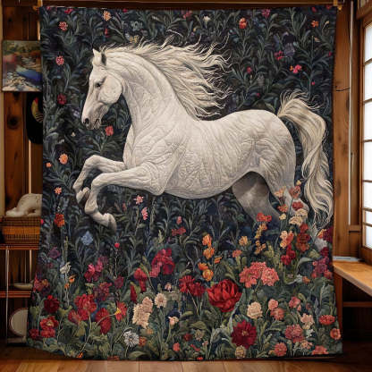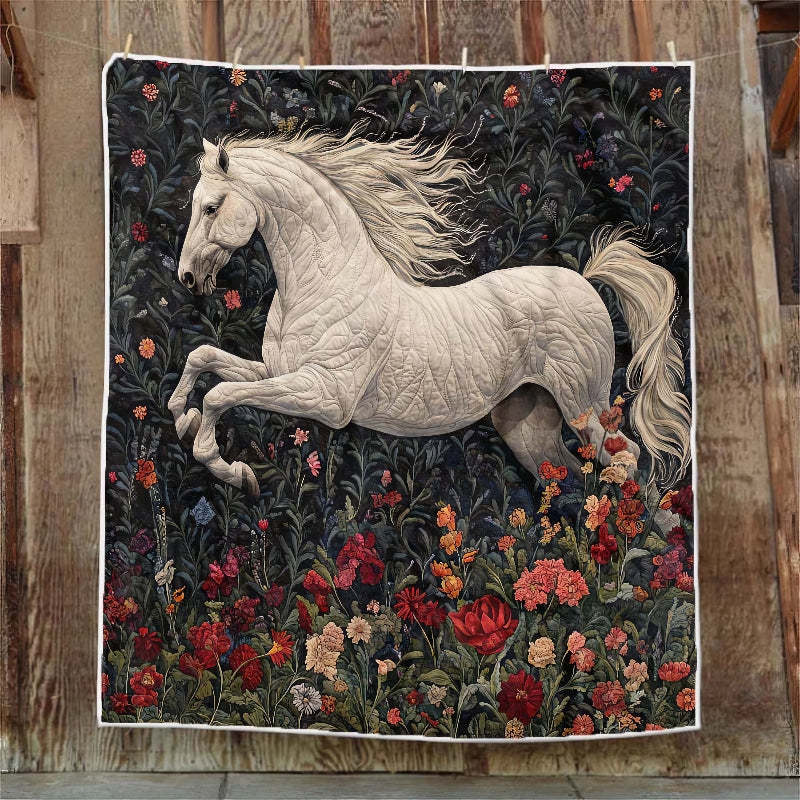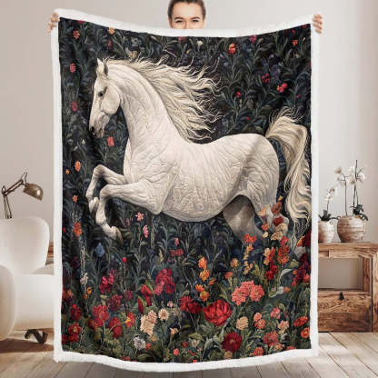 Blossom Fields White Horse Blanket - H252 - Premium Blanket