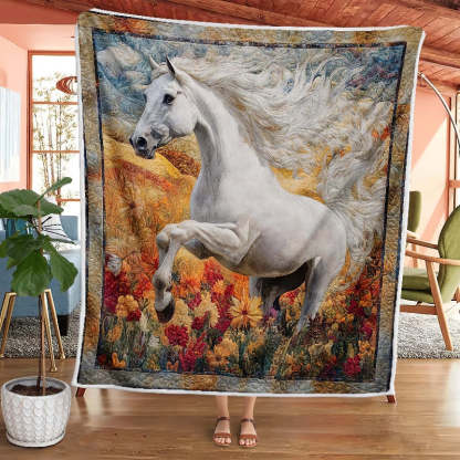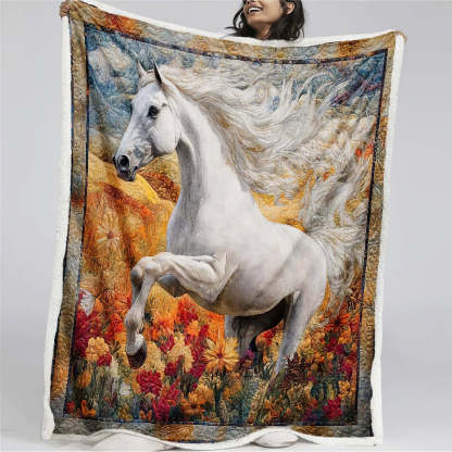 Blossom Fields White Horse Blanket - H253 - Premium Blanket