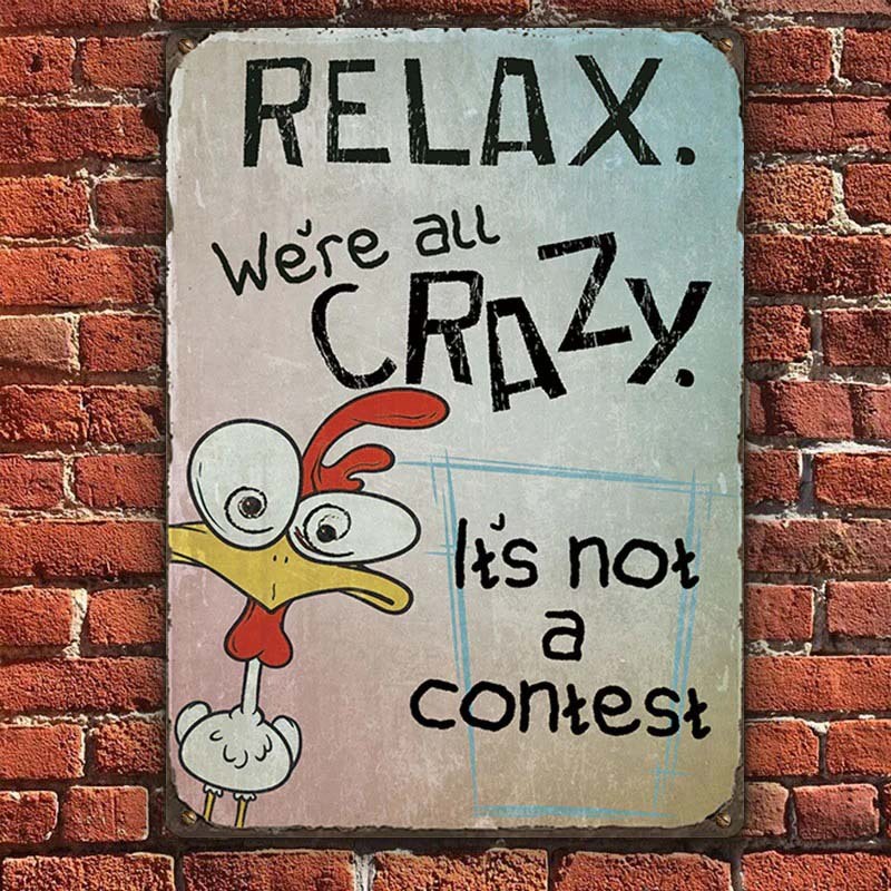 Funny Chicken Relax We Are All Crazy - Vintage Metal Sign