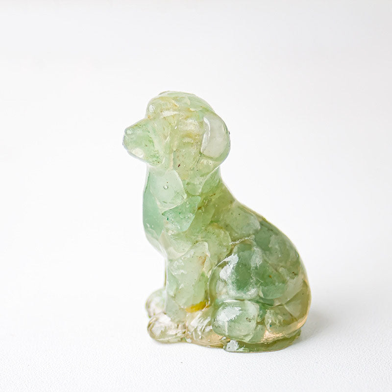 - 1 x Handmade Natural Crystal Gemstone Sitting Dog - Aventurine