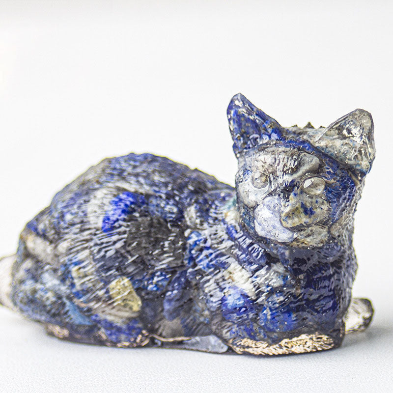 - 1 x Handmade Natural Crystal Gemstone Lying Cat - Lapis Lazuli