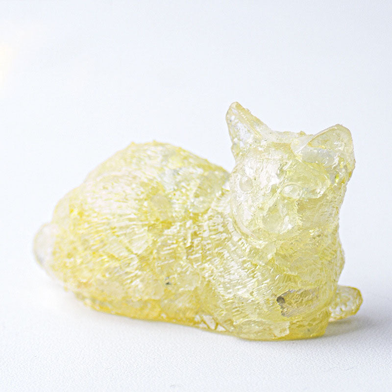 - 1 x Handmade Natural Crystal Gemstone Lying Cat - Lemon Citrine