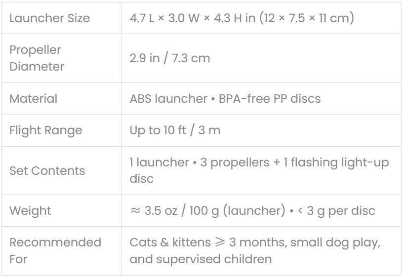 Slot in a disc, pull the trigger, and watch it soar up to 10 ft (3 m)—perfect for awakening your cat’s chase mode from a lazy nap.
