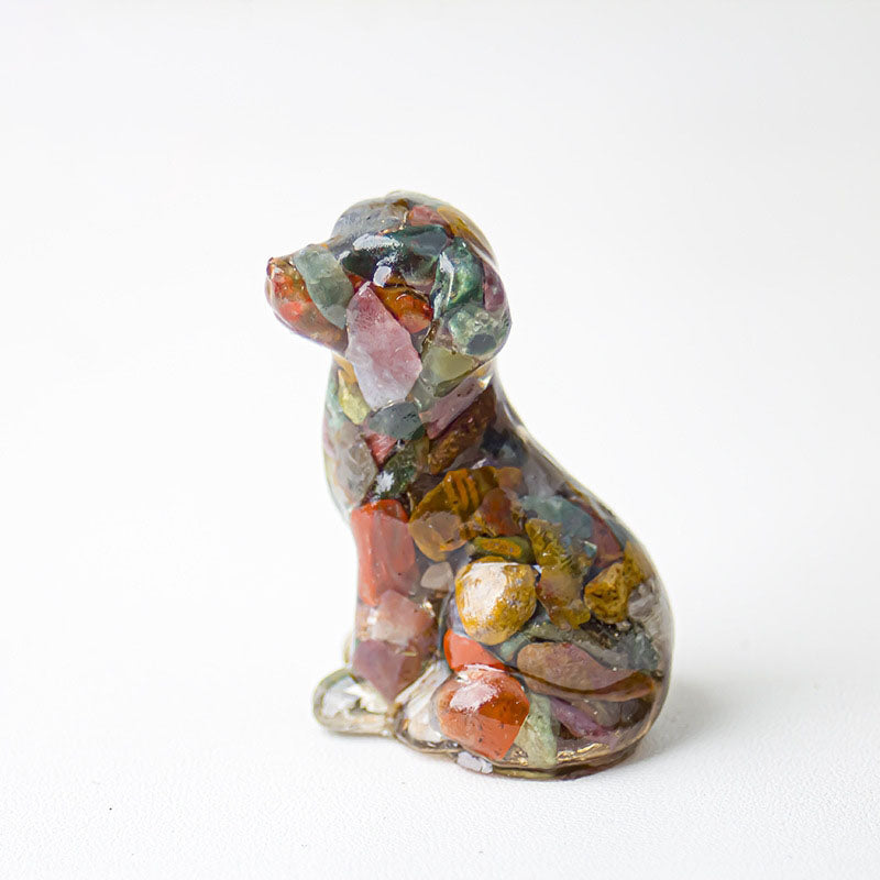 - 1 x Handmade Natural Crystal Gemstone Sitting Dog - Ocean Jasper