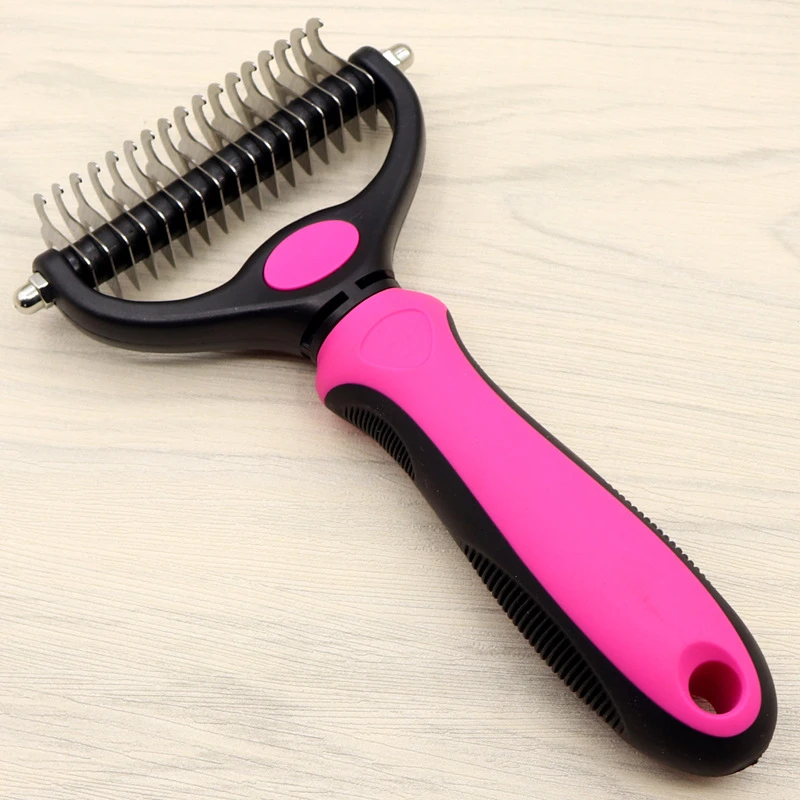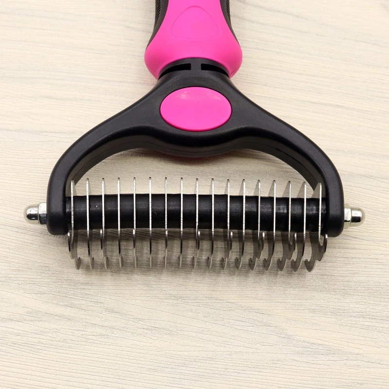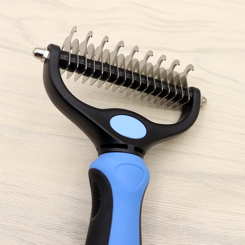 Pet Grooming Tool - 2 Sided Undercoat Rake for Cats Dogs brush - Safe Dematting Comb for Easy Mats Tangles Removing