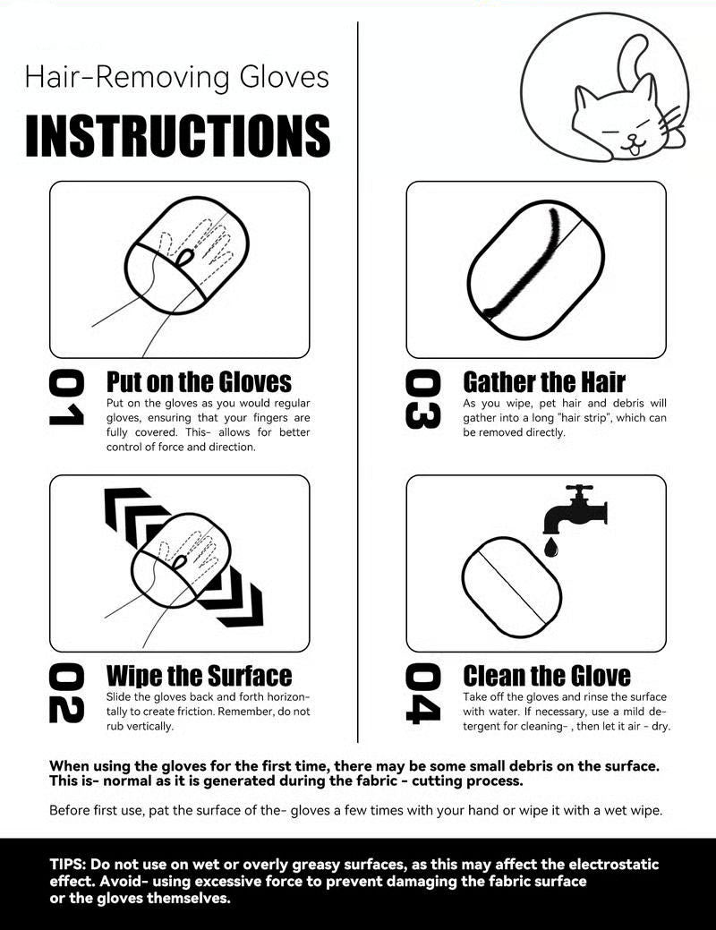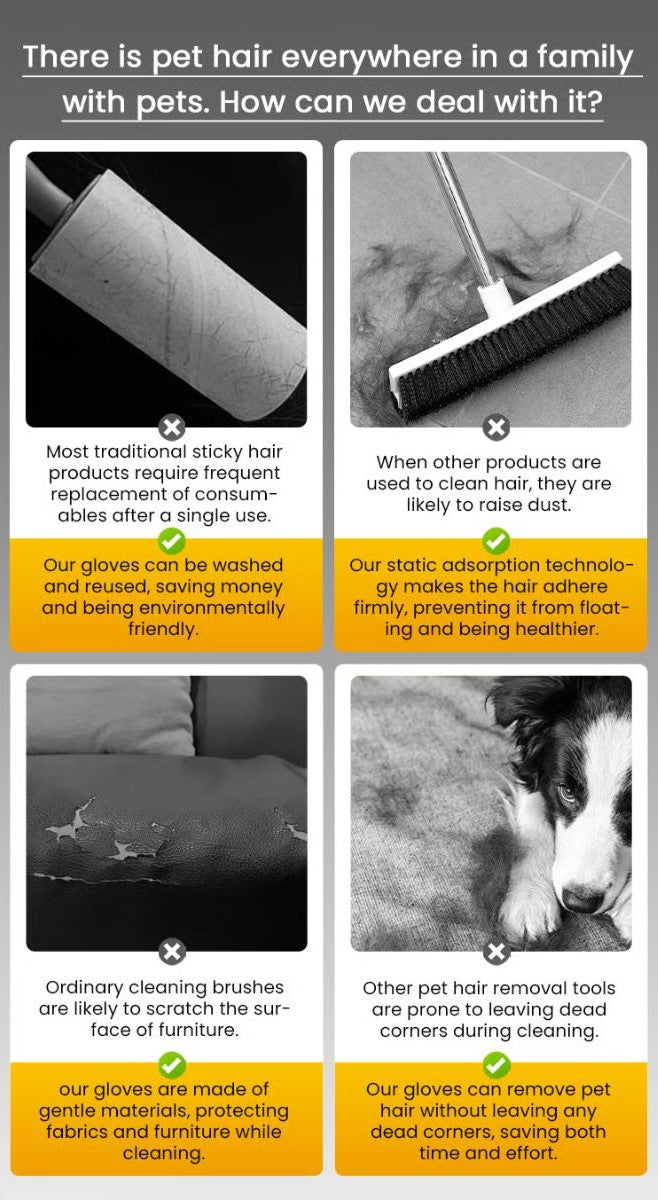 Highlight the glove’s ability to attract and trap hair with static electricity.