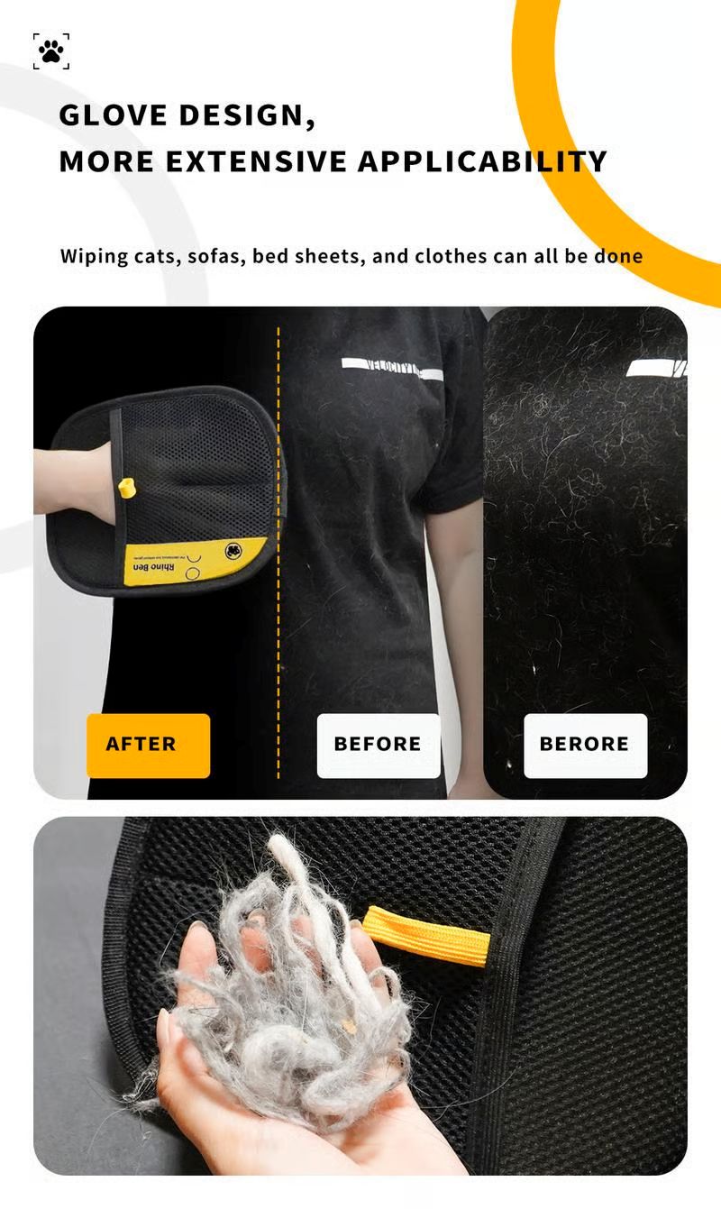 This glove effectively collects pet hair from clothes, furniture, and carpets, leaving them looking like new.