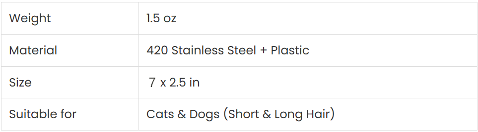 Weighing just 1.5 oz, the brush is easy to grip and maneuver, ensuring a comfortable grooming session for both you and your pet.