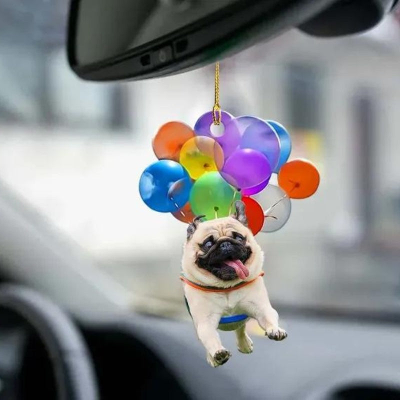 Pug Fly With Bubbles Car Hanging Ornament BC013