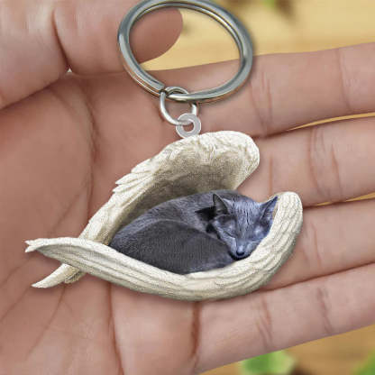 Sleeping Angel Acrylic Keychain Russian Blue Cat SA123