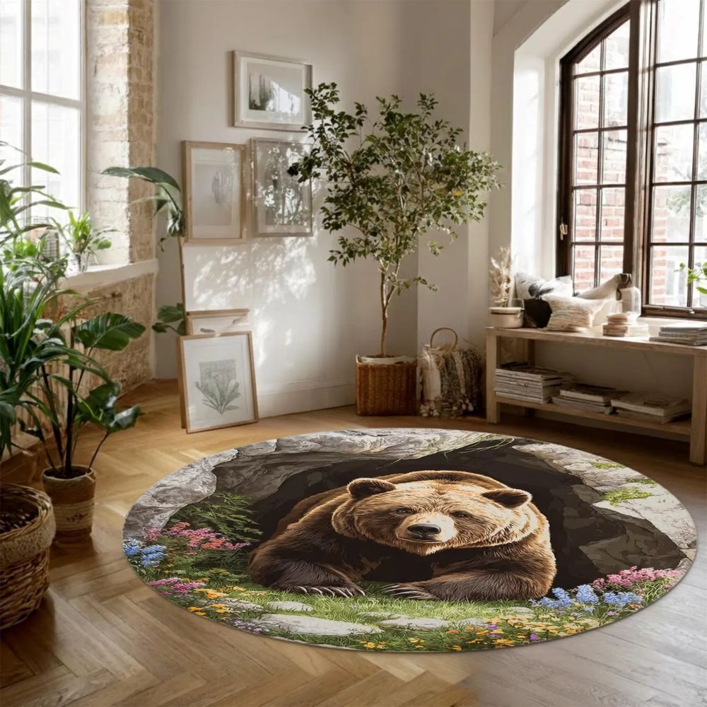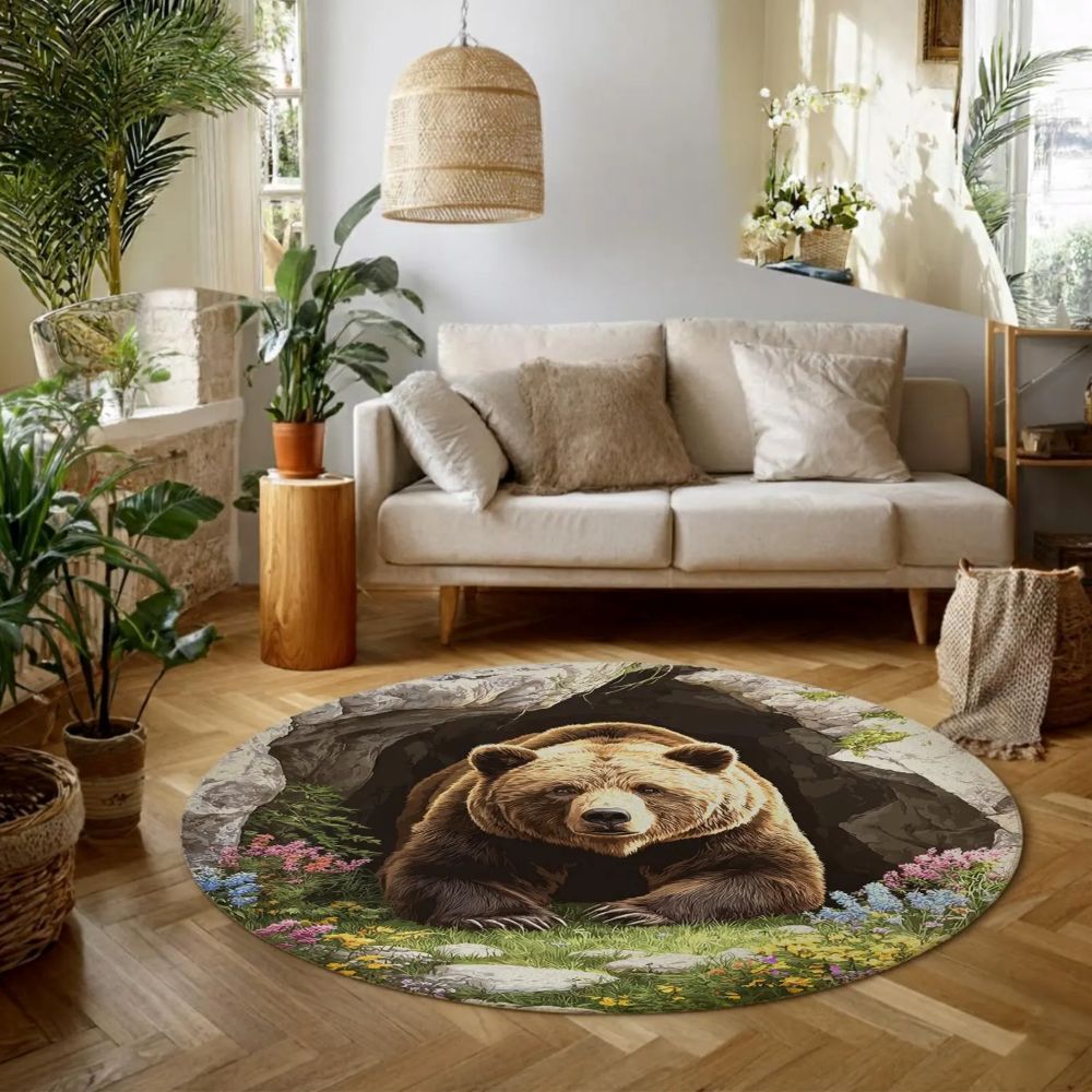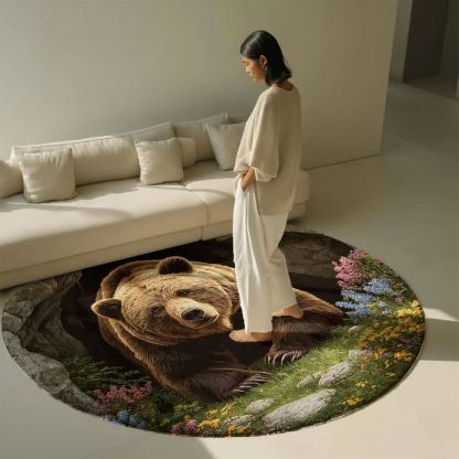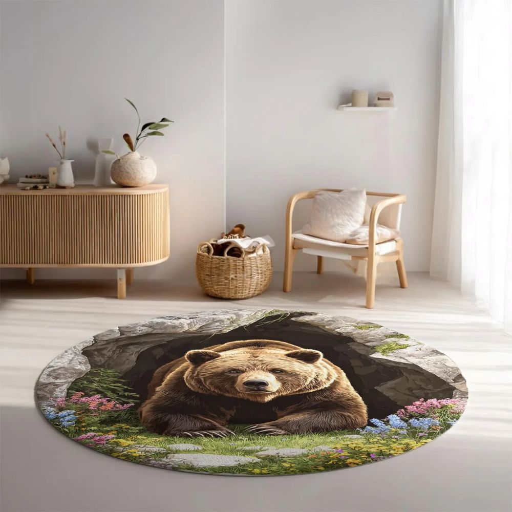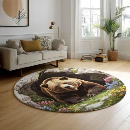 Spring Floral Bear Cave - 3D Illusion Round Rug - H641