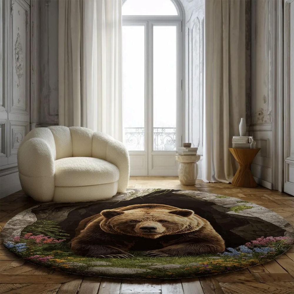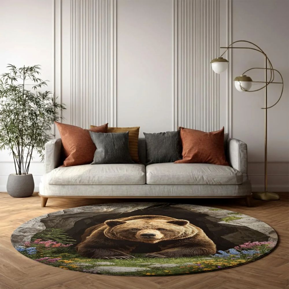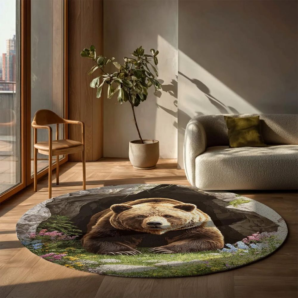 Spring Floral Bear Cave - 3D Illusion Round Rug - H641