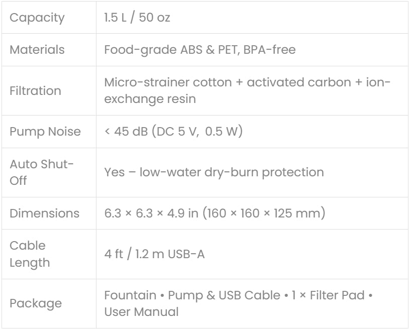 Holds a full week of water for an adult cat or small dog—perfect for busy workdays and weekend get-aways.