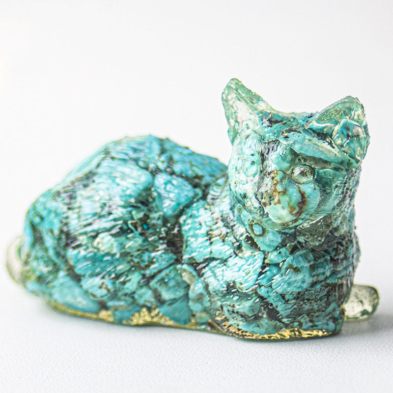 - 1 x Handmade Natural Crystal Gemstone Lying Cat - Turquoise