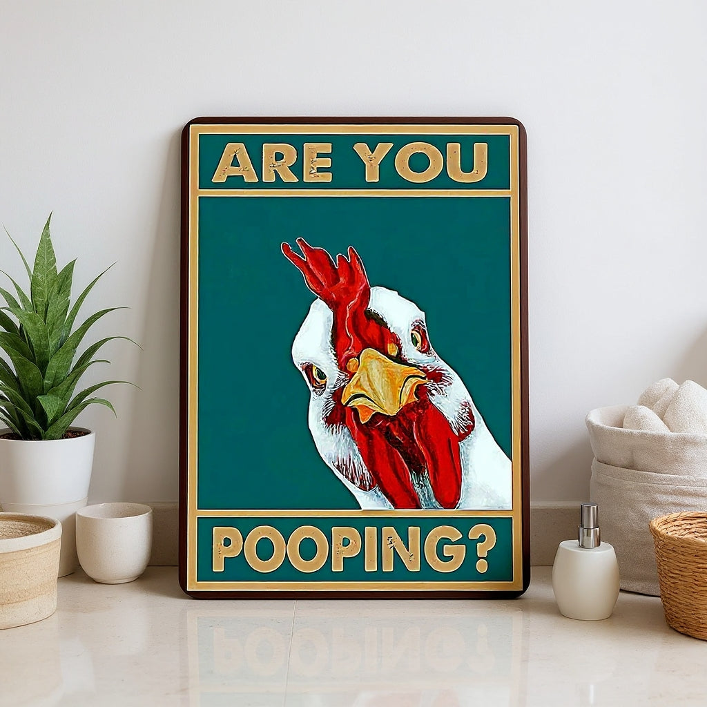 Vintage Chicken Metal Sign – Funny "Are You Pooping?" Wall Decor - BW038