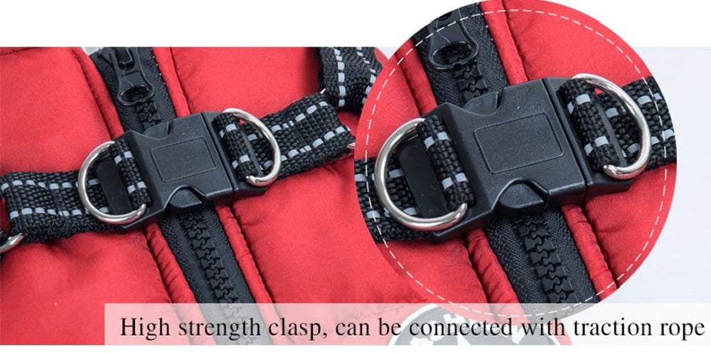 The Waterproof Dog Jacket Harness features two stainless steel D rings on the back for attaching a leash so that you can easily take your dog for walks while keeping them warm.