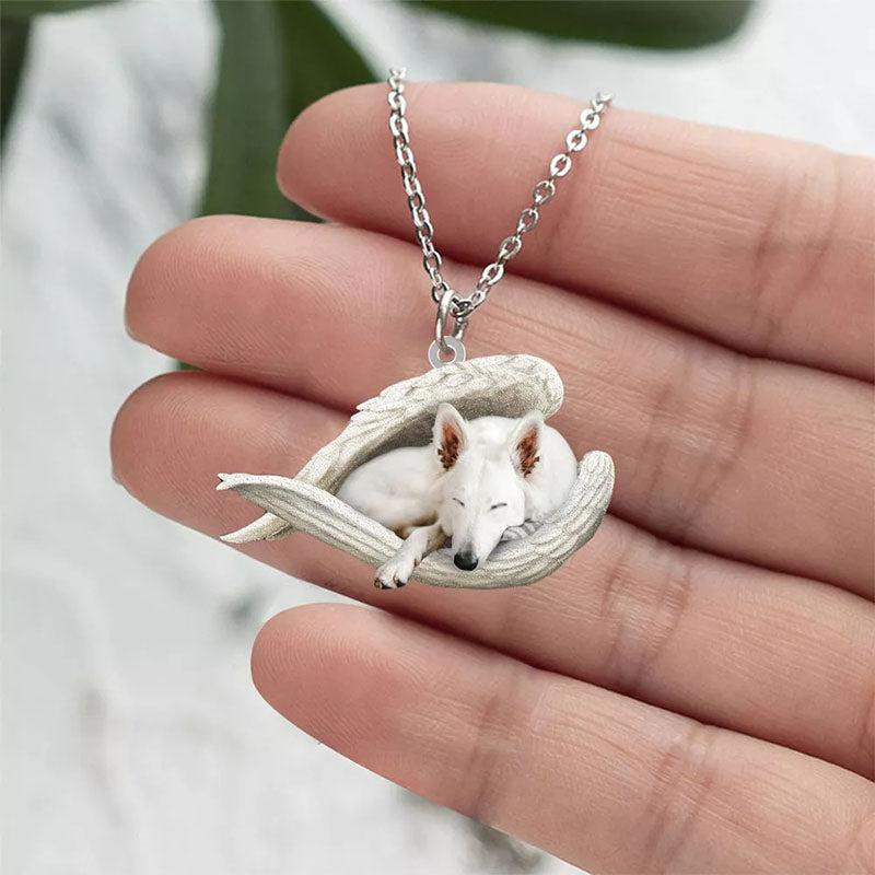 White German Shepherd Sleeping Angel Stainless Steel Necklace SN030
