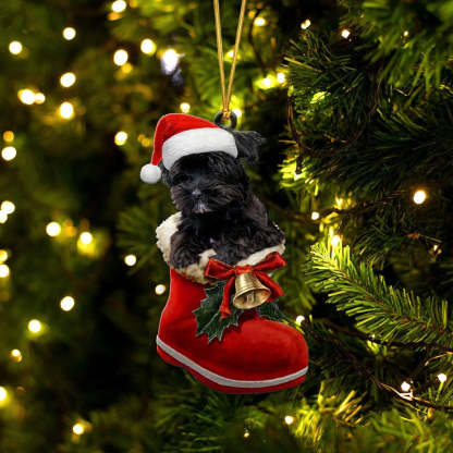 Yorkshire Terrier Black In Santa Boot Christmas Hanging Ornament